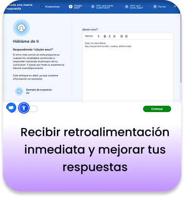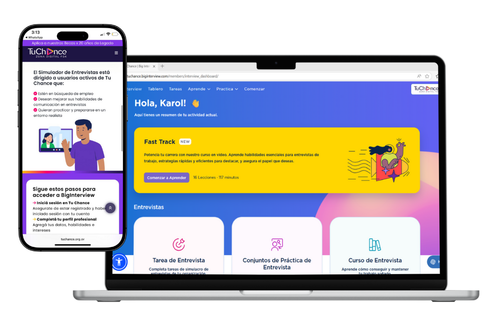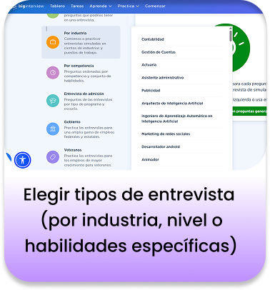 Big Interview es una plataforma interactiva en lÃnea que combina formación en video y práctica real para ayudarte a dominar tus entrevistas de trabajo. Es ideal tanto si estás buscando tu primer empleo como si querés mejorar tus oportunidades laborales.